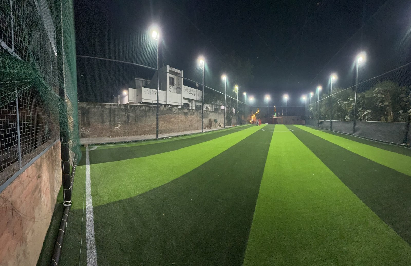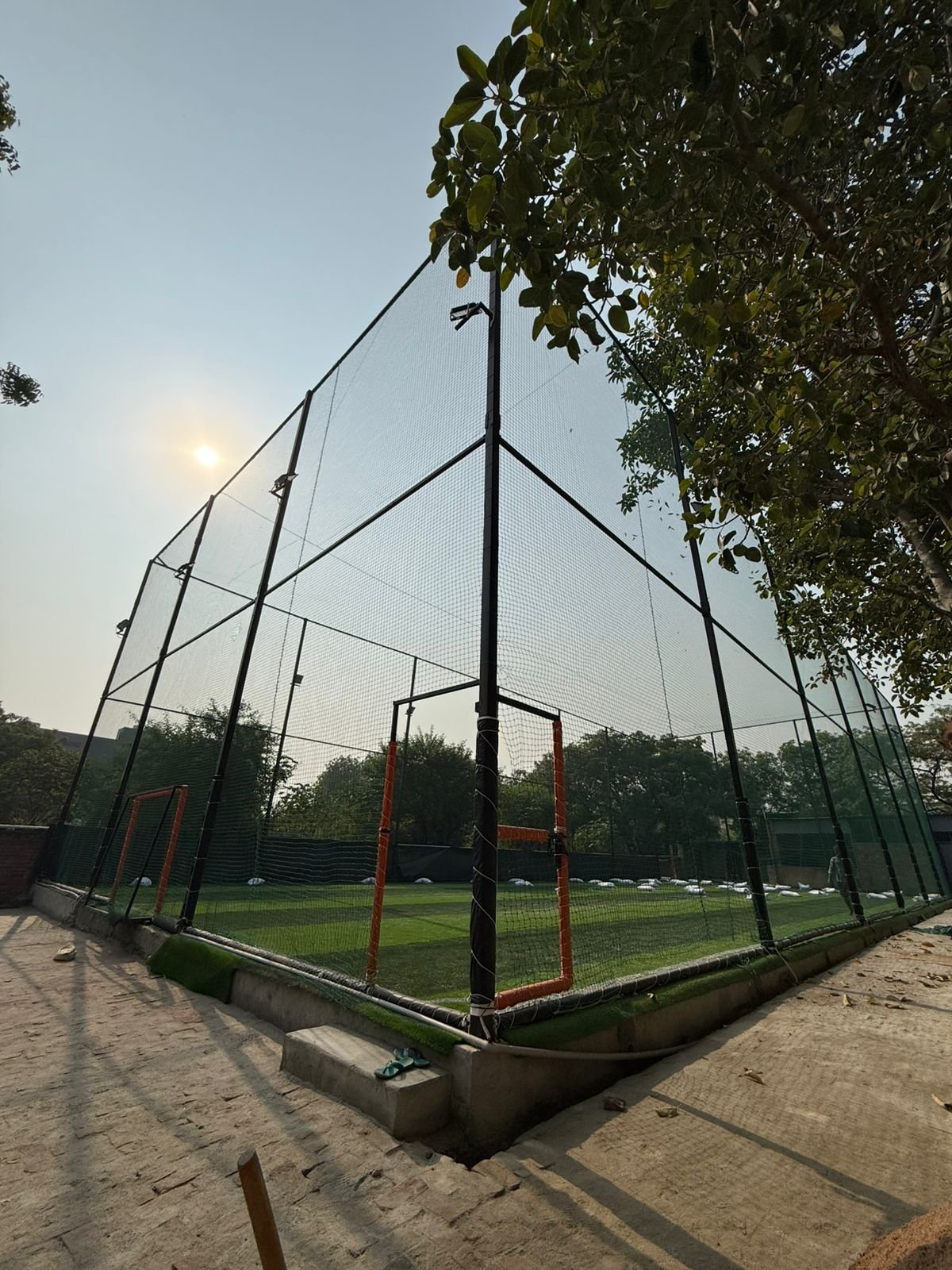 5,500 sq. ft. FIFA-certified artificial turf with 32 ft high boundaries.